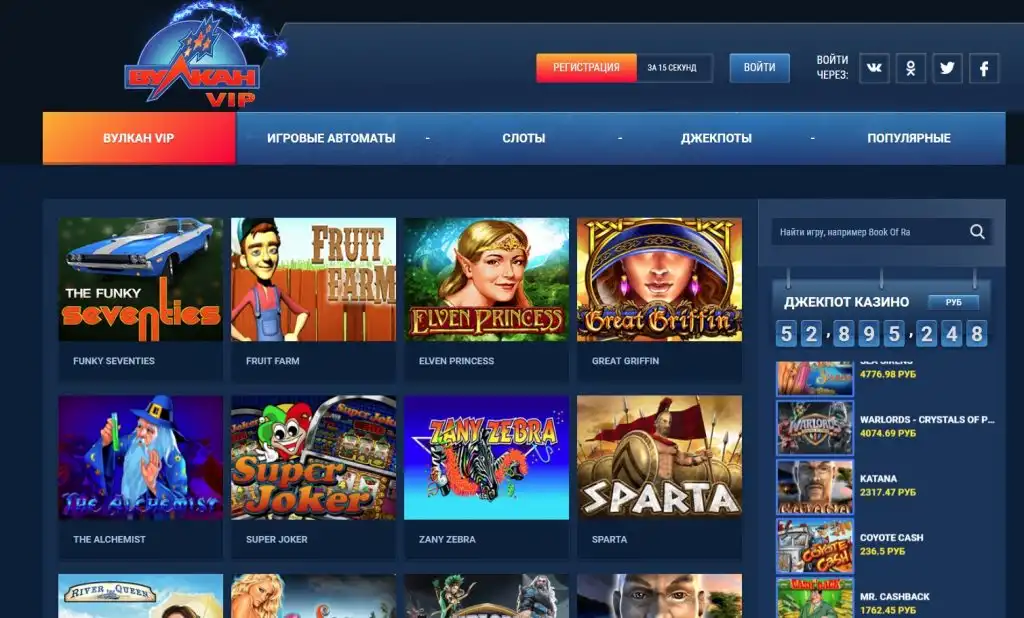 Игровой портал «Вулкан Вип» – идеальное место, чтобы приятно провести время за игровыми аппаратами. В казино рады любому игроку и если вы решите играть в дальнейшем на реальные деньги, тогда вас порадуют большим количеством бонусов.